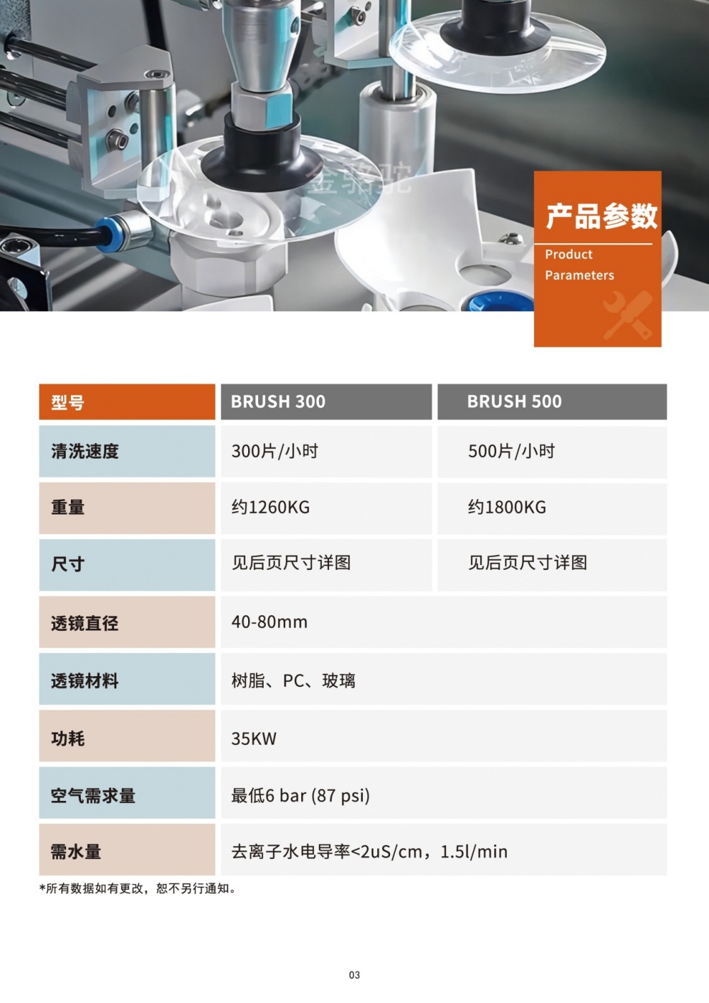 该设备是一个全自动化刷式光学镜片清洗系统,具备强大且高效的串联式系统,可以清除化学品残留、指纹等污染物,为后续涂层工艺准备好各种不同型号的镜片。